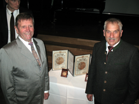 Staatssekretär Gerhard Eck überreichte den Preis gemeinsam mit Dr.-Ing. Heinrich Schroeter, Präsident der Bayerischen Ingenieurekammer-Bau und dem Juryvorsitzenden Dipl.-Ing. (FH) Eduard Knoll dem Präsident der Europäischen Holocaustgedenkstätte Stiftung Manfred Deiler, der den Preis stellvertretend für seine Organisation entgegennahm.